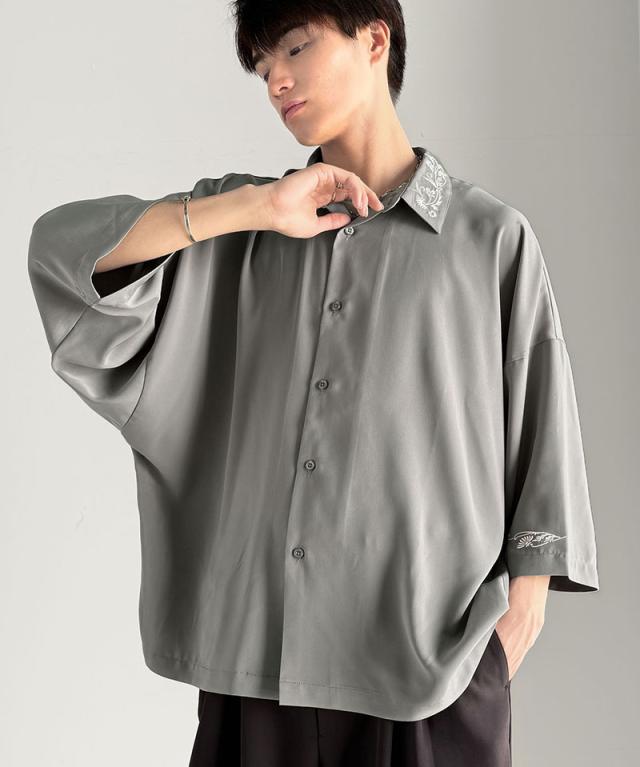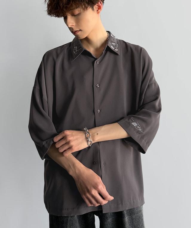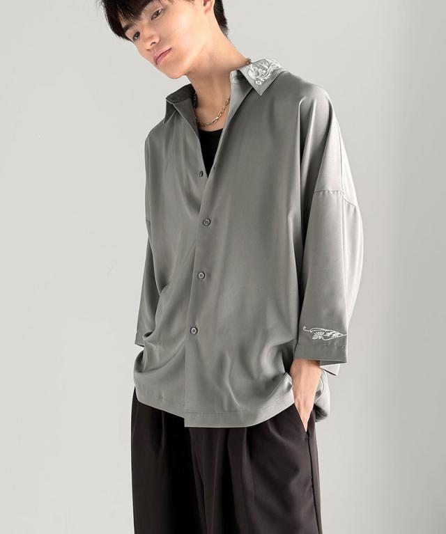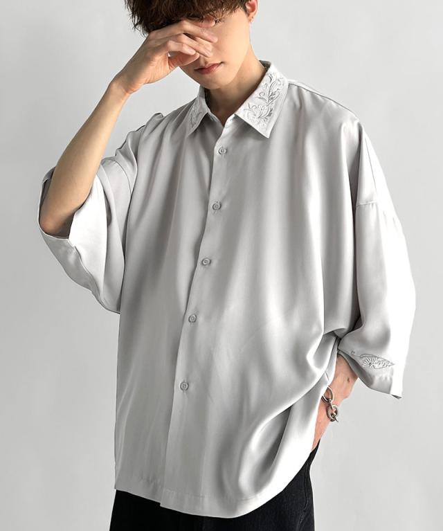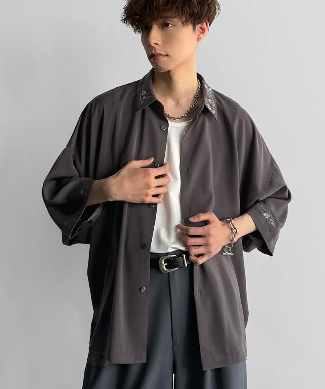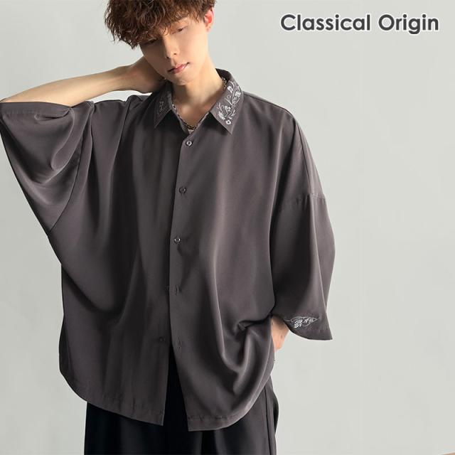 クラシカルエルフ春新作 Classical Origin メンズ トップス シャツ・ブラウス 衿刺繍 ドレープ ドルマン シャツ 刺繍 艶感 2026ss co1010004