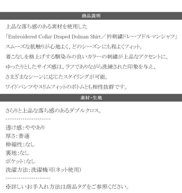 ★Embroidered Collar Draped Dolman Shirt / 衿刺繍ドレープドルマンシャツ★
