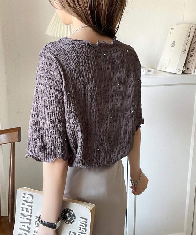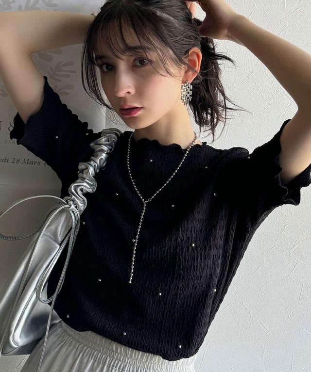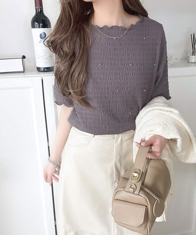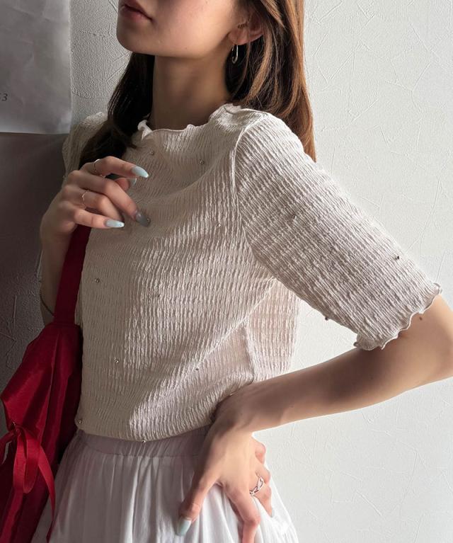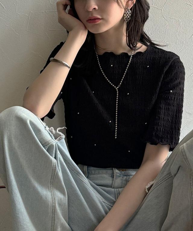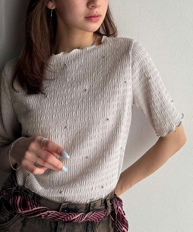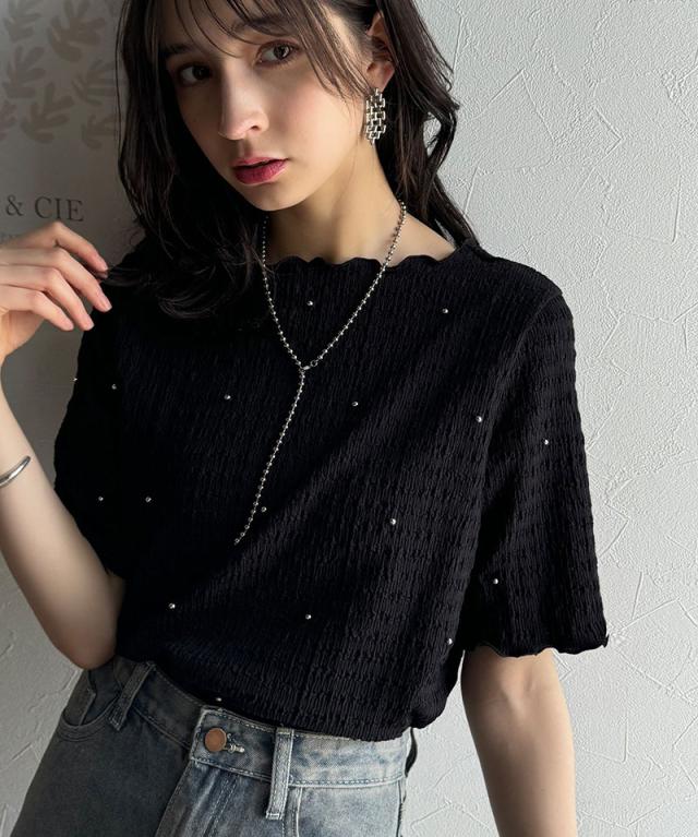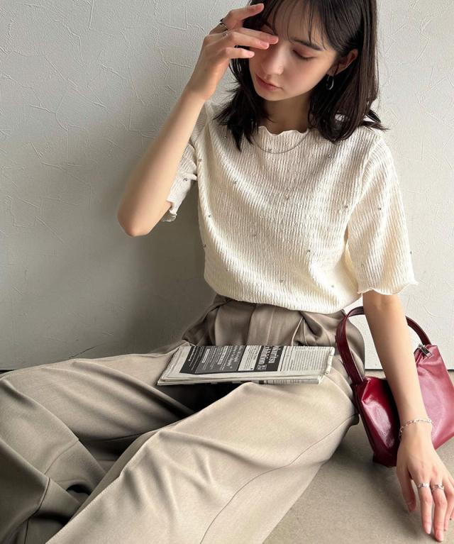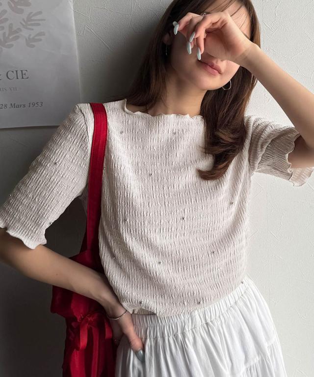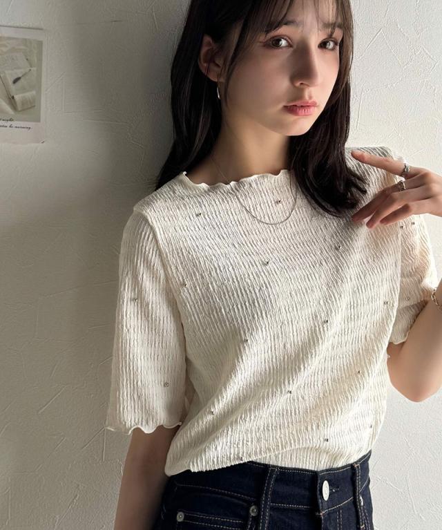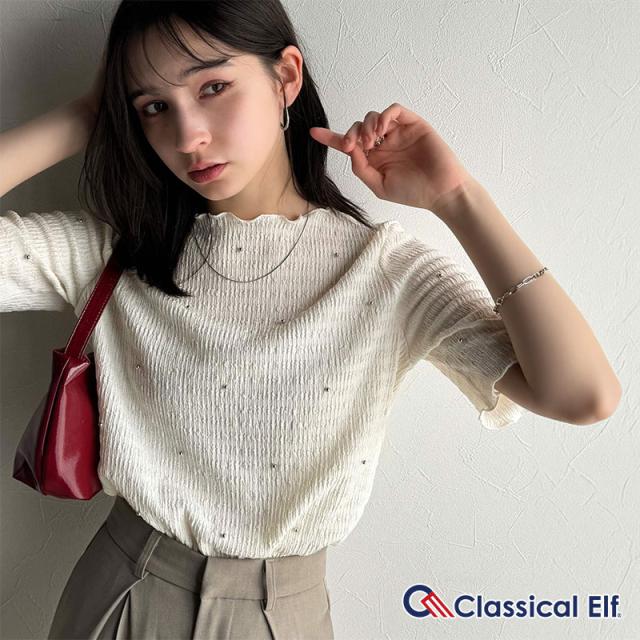 クラシカルエルフ春新作 レディース トップス Tシャツ/カットソー 夏スタイル メロウ ビジュー ジャガード 半袖 洗練 大人可愛い シンプル 2026ss ce1010413