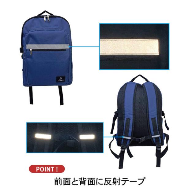 本体前面とショルダーには反射テープ付きで夜道の安全対策にも◎