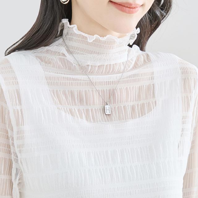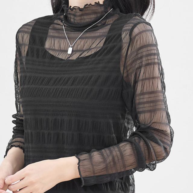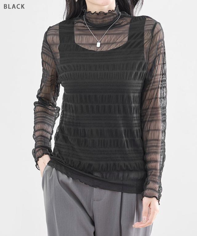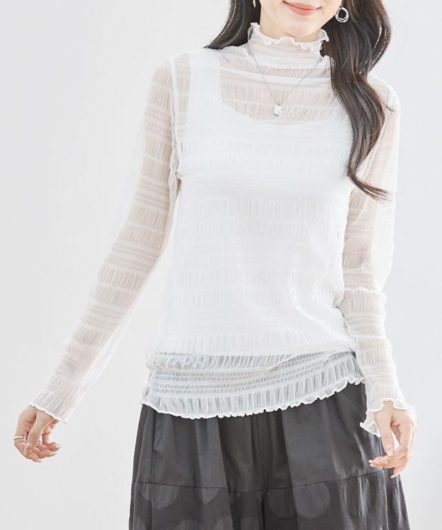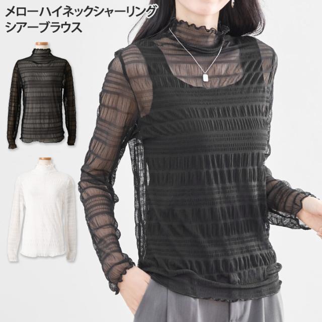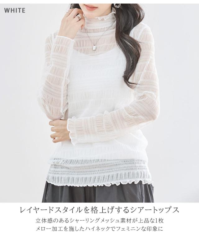 新作 メローハイネックシャーリングシアーブラウス レディース シアートップス 透け感 トップス インナー タートルネック フォーマル オフィス 春 夏 長袖 レイヤード 重ね着 Tシャツ カットソー ロンT 薄手