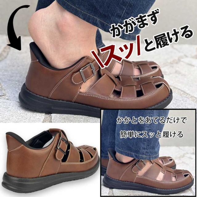 サンダル メンズ スポーツ カメサンダル グルカサンダル 黒 ブラウン ハンズフリー おしゃれ シンプル 軽量 軽い サッとと履ける 履きやすい ブランド dj-honda