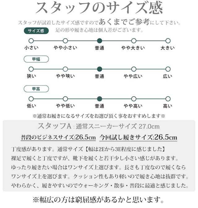 | 【サイズ】 | 25.0cm 25.5cm 26.0cm 26.5cm 27.0cm 28.0cm おすすめのサイズ:細身、普通の方→「通常サイズ」 甲高、幅広の方→「1サイズ大き目」 こちらのアイテムの足入れは若干小さめとなっております |