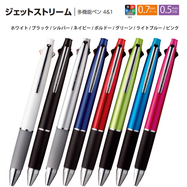 三菱鉛筆 JETSTREAM ジェットストリーム 多機能ペン4+1 黒 / 赤 / 青 / 緑 ボールペン 0.7mm径+0.5シャープ MSXE5-1000-07 -1 ホワイト / -24 ブラック / -26 シルバー / -9 ネイビー / -65 ボルドー / -6 グリーン / -8 ライトブルー / -13 ピンク 低粘度油性