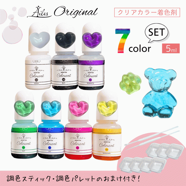 レジン 着色 クリアカラー 7色セット 5ml UVレジン 着色料 レジン着色剤セット レジンクラフト 液体タイプ UV-LEDレジン液 着色剤 まざりやすい Ailesエールオリジナル