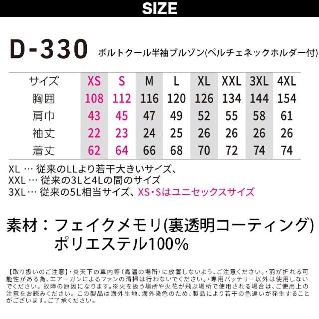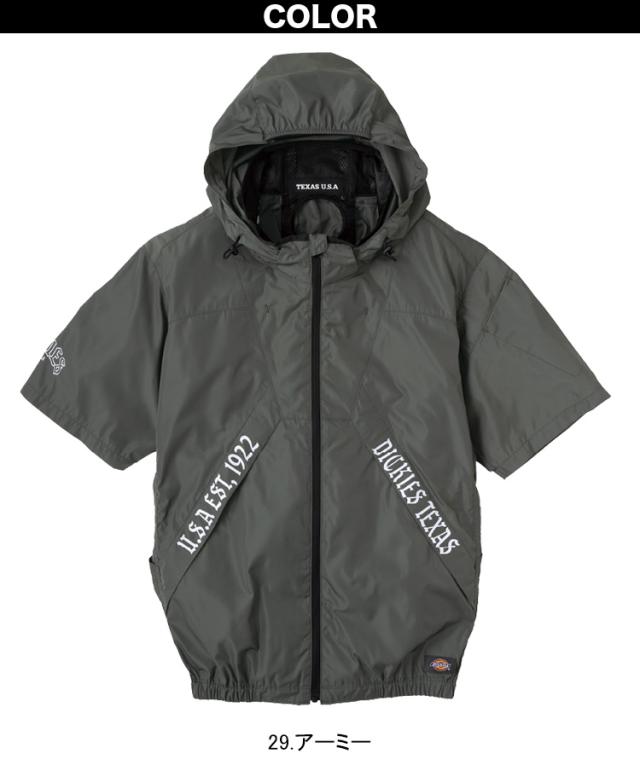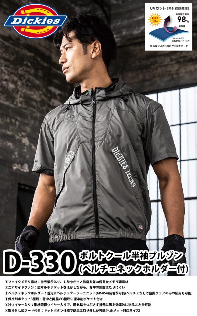 2025年新商品 ディッキーズ ボルトクール 半袖ブルゾン ペルチェネックホルダー付 D-330 服のみ単品 UVカット フード付き取外し可 空調作業服 サイドファン仕様