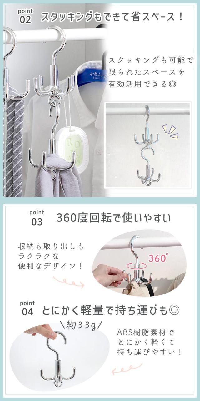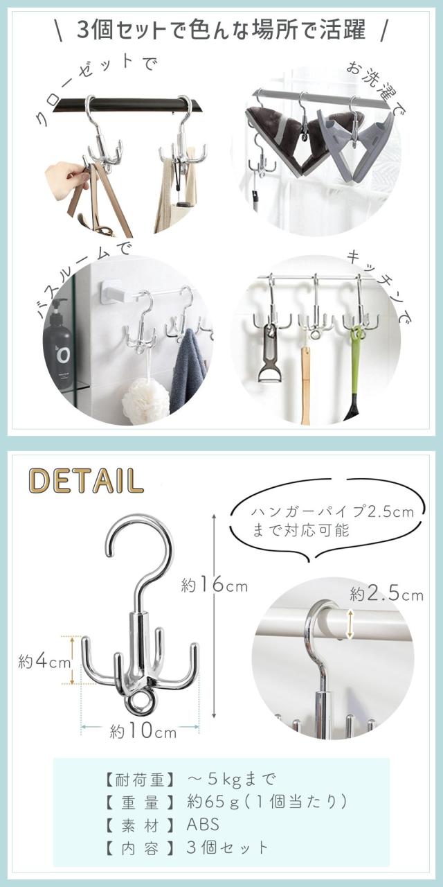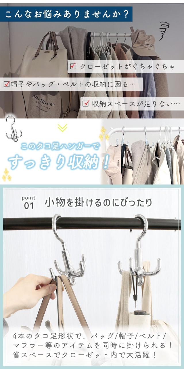 ハンガー/回転フック/360°回転/4脚/タコ脚ハンガー/小物/収納ハンガー/タコ足ハンガー/多脚ハンガー/バッグハンガー/収納/便利/整理整頓/多収納ハンガー/回転できる/省スペース/スペース活用/3本組/4つ/複数/ベルトハンガー/連結可能/バッグフック/帽子掛け/ベルト/鞄掛け/バッグ掛け/バッグ収納/収納用品/クローゼット/アイデア商品/3本セット/回転フックハンガー/帽子ハンガー/ネクタイハンガー/マルチハンガー/フック/クローゼット収納/多収納/回転式/スタッキング/連結可/鞄/かばん/帽子/マフラー/ストール/衣類収納/壁掛け/シンプル/シルバー/TN-OCLH