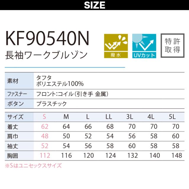 空調風神服 長袖ブルゾン KF90540N 紫外線遮断率95% UVカット 単品 ポリエステル100% サンエス 撥水 電動ファンウェア 空調作業服 春夏作業服