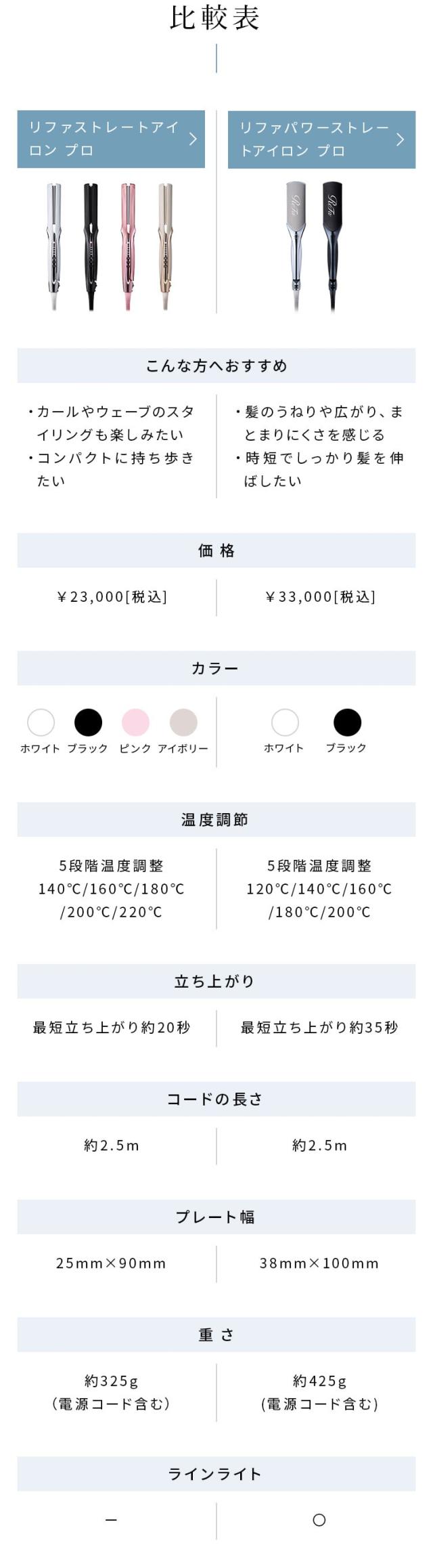 製品仕様(ReFa POWER STRAIGHT IRON PRO)