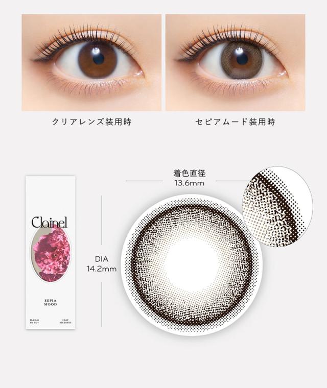 カラコン コンタクト コンタクトレンズ 14.2mm ワンデー 1day 度あり クレイネル Clainel セピア ブラウン UVカット 高含水 イオン性 サンドイッチ構造 レンズ