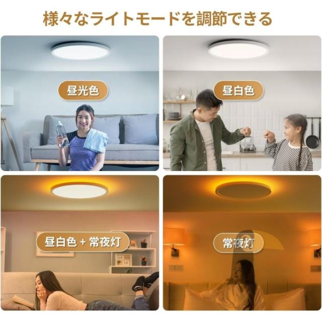 シーリングライト 木目調 白色 LED シンプル 円形 6畳~12畳 三色変光 常夜ライト 間接照明 電気 照明器具 和風 リビング 子供部屋 寝室 和室 洋室 インテリア