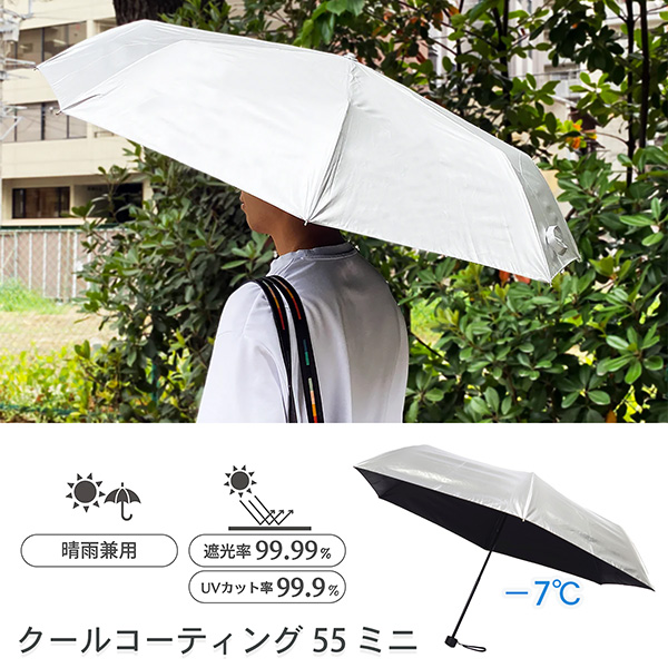 晴雨兼用 折り畳み 日傘 クールコーティング 55 ミニ シルバー 簡単開閉 軽量 遮光 遮熱 遮光率99.99% UVカット率99.99%UV 遮熱率59% 耐水度5000mm以上 55cm 男性 女性 小学生 ユニセックス No.4040 UVION
