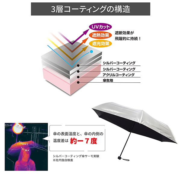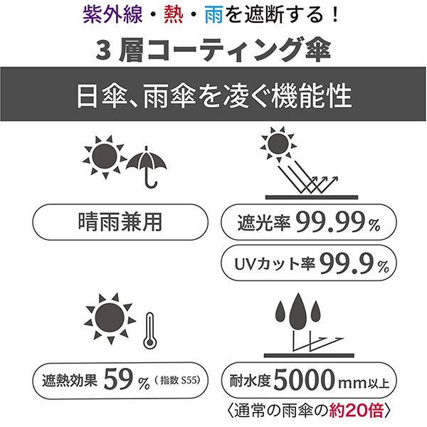 紫外線・熱・雨を遮断する!3層コーティング傘。