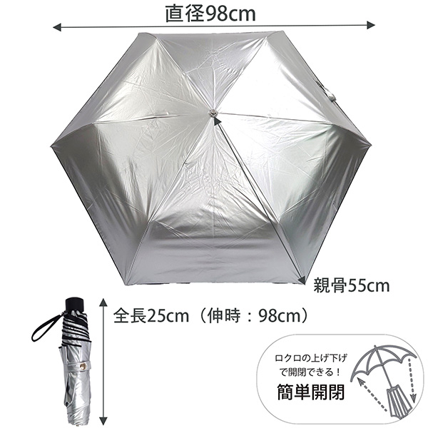 サイズ:親骨55cm、直径98cm、全長25cm(伸時:98cm)