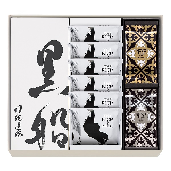 内容量:黒船カステラ1本、ザリッチアンドミルク7枚入、ノボタイル12枚入(ダーク・ホワイト各6)