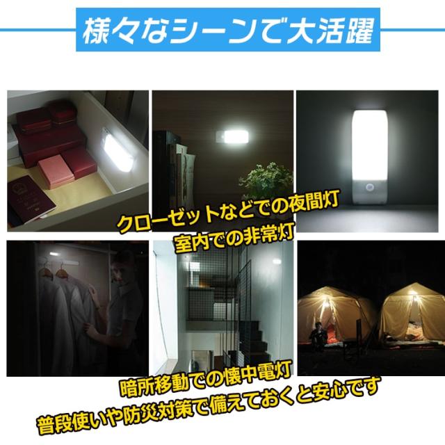 人感センサーライト 懐中電灯 夜間灯 LEDライト 高輝度 USBケーブル マグネット付き 両面テープ付き 室内 クローゼット 部屋 玄関 非常時 sl049