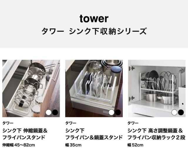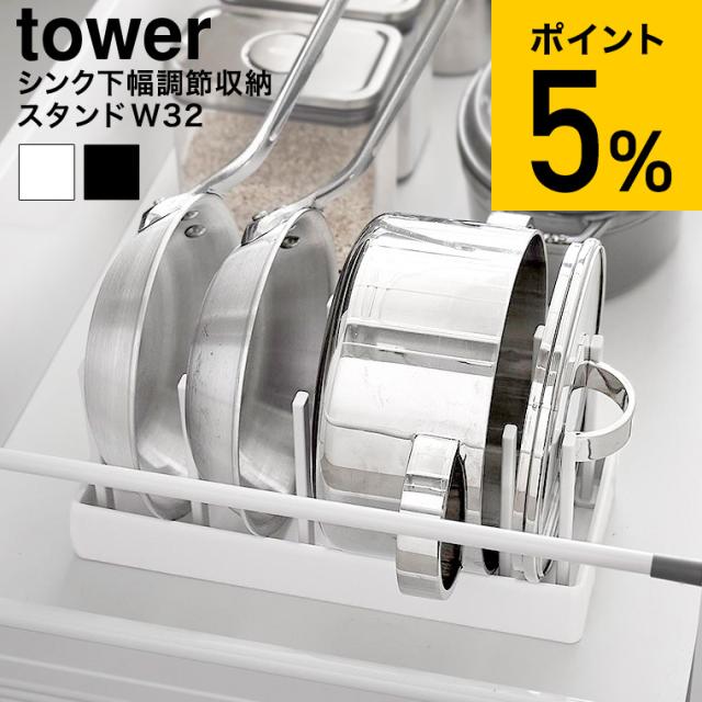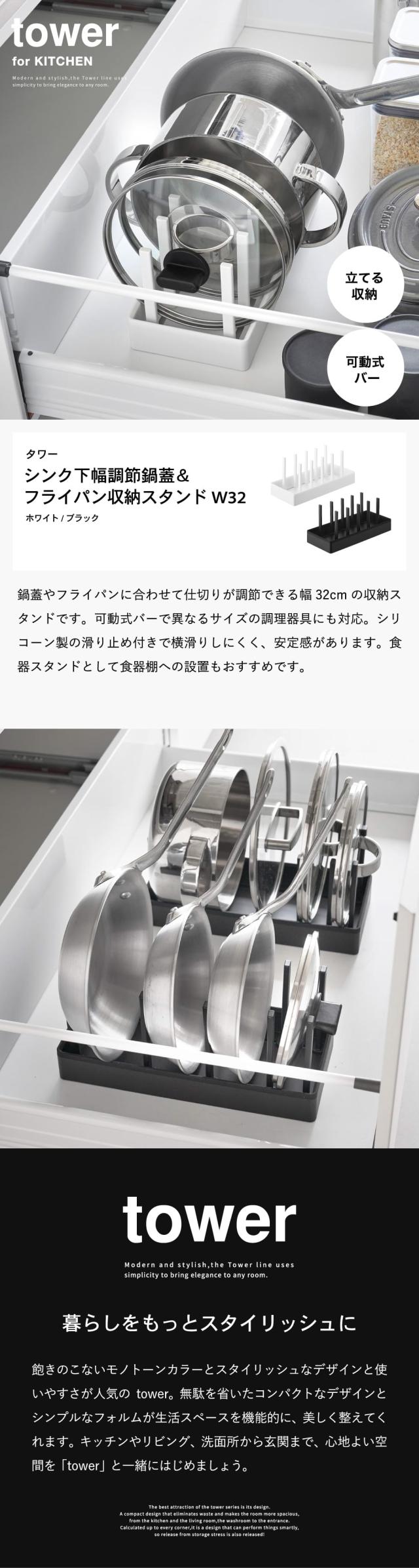 山崎実業 tower シンク下幅調節鍋蓋&フライパン収納スタンド タワー W32 公式 1359 1360 ホワイト ブラック 送料無料 幅32cm キッチン収納 蓋 フライパン 鍋 スタンド ディッシュラック 可動式 調理器具 収納