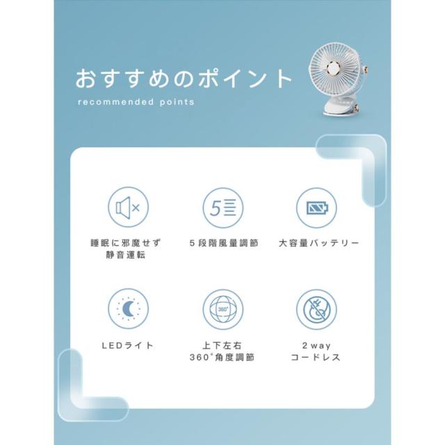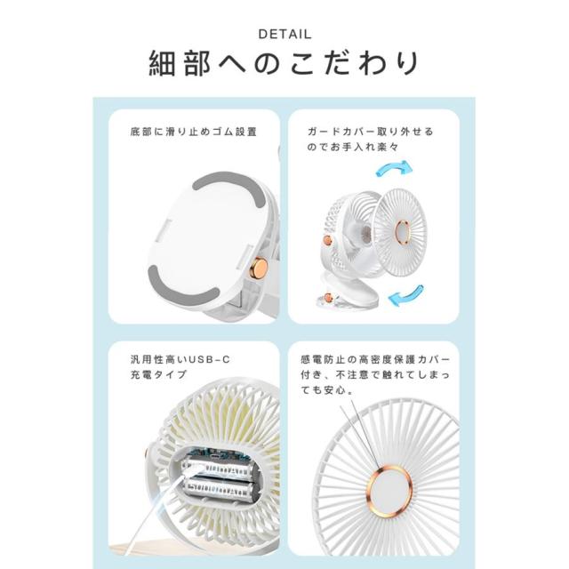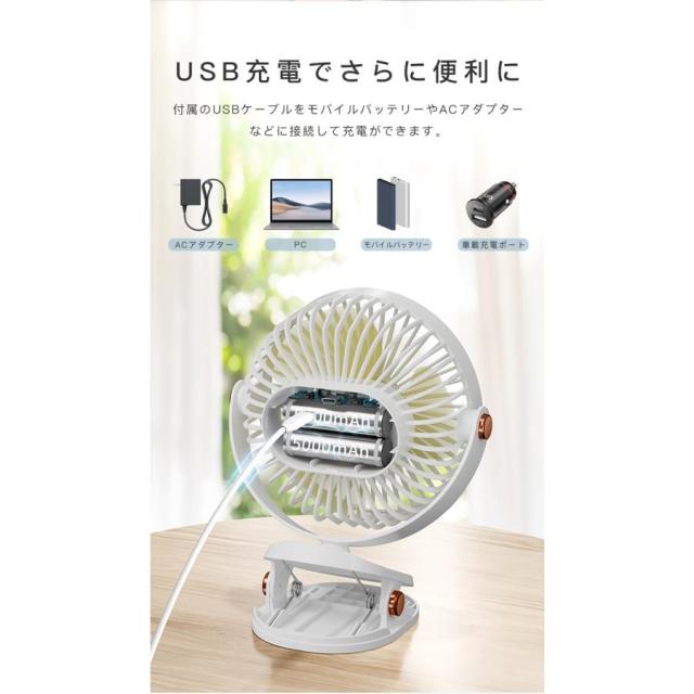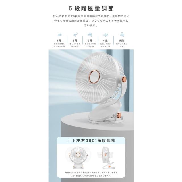 サーキュレーター 扇風機 卓上扇風機 壁掛け 据え置き 2WAY 360°角度調節 静音 5段風量 コードレス おしゃれ 送風機 ポータブル 充電式クリップファン