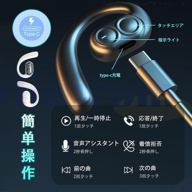 骨伝導イヤホン ワイヤレスイヤホン Bluetooth5.4 片耳掛け 超軽量 type-c充電 8時間再生 マイク付き 耳を塞がない IPX7防水 Hi-Fi高音質 iPhone Android適用