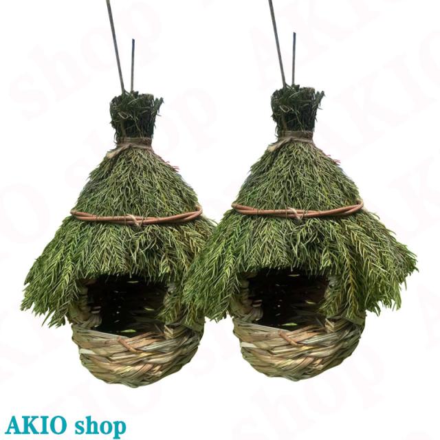 2点セット手編み鳥の巣 鳥類用 四季通用 自然素材 ペット用品 小鳥の家 鳥に温かく快適な家を提供 通気性が良く 伝統工芸 頑丈で耐久 バルコニー・リビングルーム 庭園装飾 店舗装飾 通気 保温 巣 巣箱 止まり木 小鳥隠し場所 鳥家 快適 ガーデンオーナメント