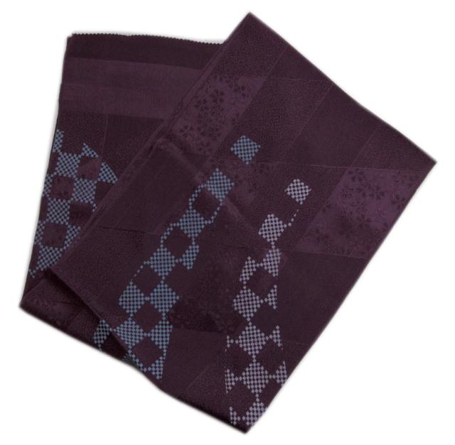 帯揚げ 帯上げ 正絹 濃紫色地桜地模様地市松ライン 着物 訪問着 色無地 小紋 フォーマル カジュアル 帯あげ きもの シルク 女性用
