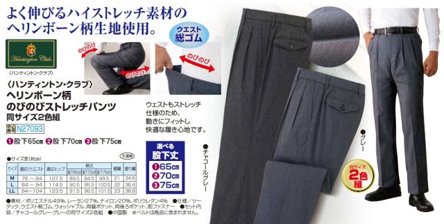 ハンティントン・クラブ ヘリンボーン柄 のびのびストレッチパンツ 2色組 選べる股下丈 スラックス ズボン パンツ メンズ 紳士服 グレー シニア 男性 ストレッチ ウエストゴム シンプル 上品 裾上げ済み シニアファッション 40代 50代 60代 70代 80代 90代 父の日 お父さん おじいちゃん 春物 夏物 春夏