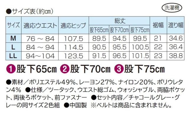 ●仕様/ツータック、ウエスト総ゴム、ウォッシャブル、両脇ポケット、両後ろポケット、前ファスナー