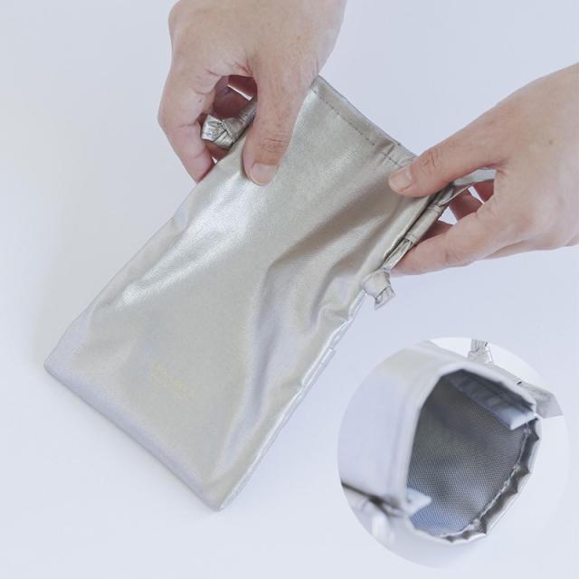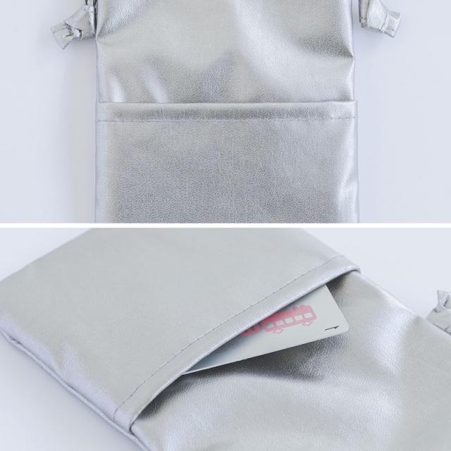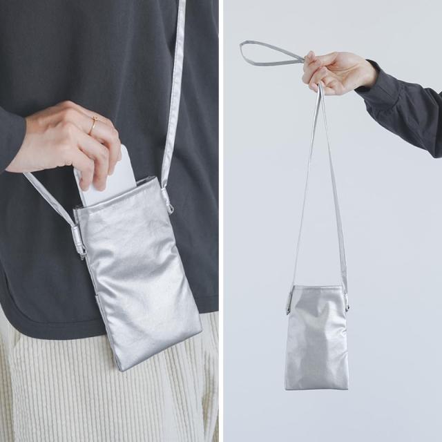 シンプルシックなデザインで人気の "BANK" シリーズに、新しくシルバーシリーズが登場しました。薄くて軽い合皮を使用した、細かなシボと程よいツヤ感が大人っぽい印象のモバイルポシェット。スマートフォンの出し入れがしやすく、重さは約28gと軽いので、気軽にお使いいただけます。ポケットのない洋服の際にはポケット代わりとして活躍します。