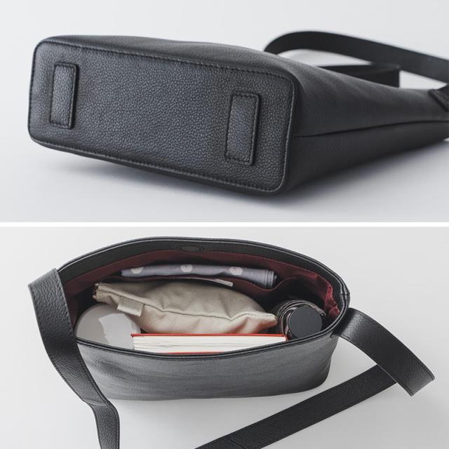 マチありでしっかり自立。見た目以上の収納力。上品なシボ感が美しい、大人の表情が楽しめるショルダーバッグ。