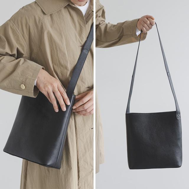 牛革ならではの上品なシボ感が美しい、大人の表情が楽しめるショルダーバッグ。しっとりと落ち着いた雰囲気で、フォーマルにもカジュアルにもお持ちいただけます。幅広い服装に似合うので、様々なシチュエーションで活躍します。