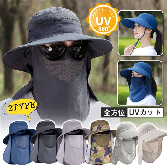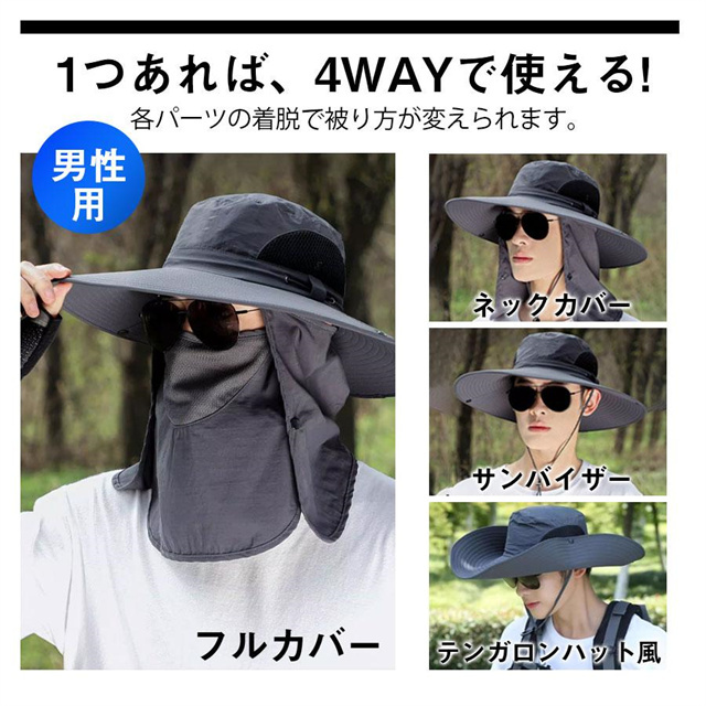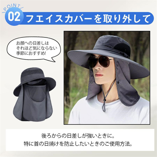 新作 農作業 帽子 日よけ バケットハット メンズ レディース 2TYPE サファリハット 春夏 フェイスカバー メッシュ あご紐付 UV 登山 釣り送料無料