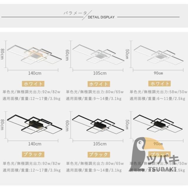 140*80cm 暖色光と白色光:92w 無極調光:82w 適用面積:12畳‐18畳