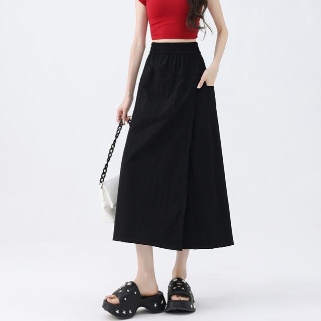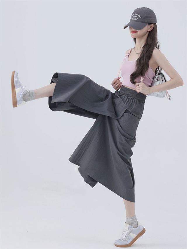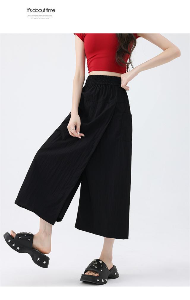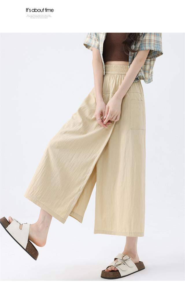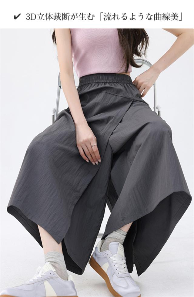 ワイドパンツ レディース ガウチョパンツ 七分丈 スリット スカート風 冷感素材 ハイウエスト 無地 ゆったり カジュアル 薄手
