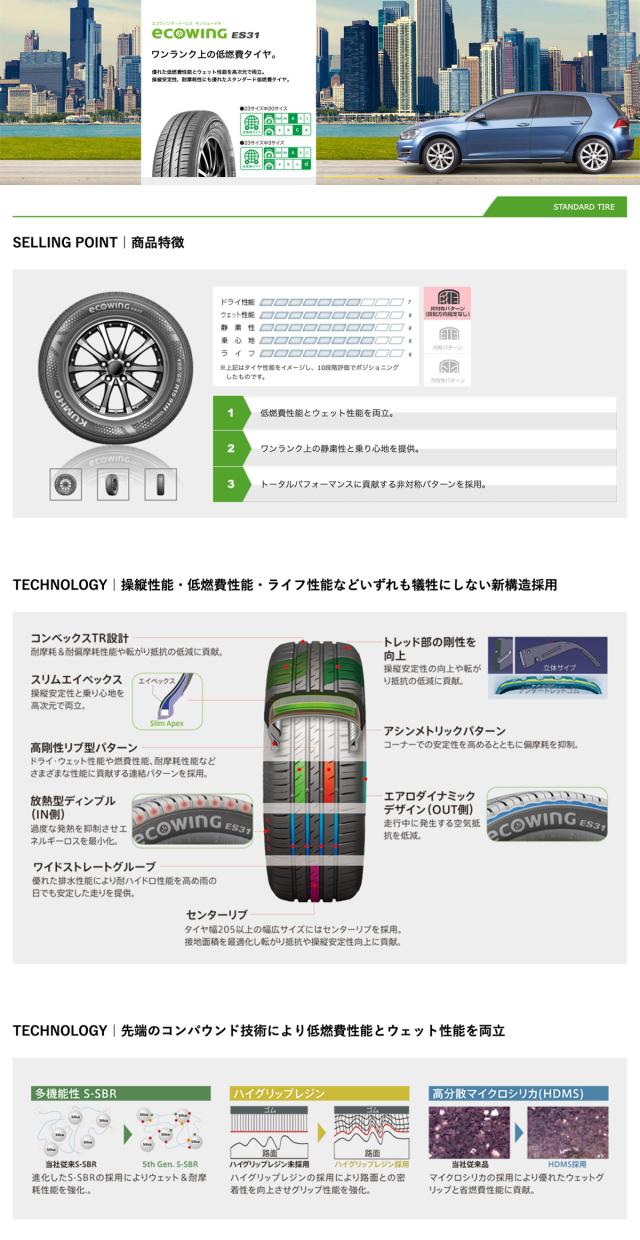 メーカー、銘柄:クムホ エコウィング KUMHO TIRE ECOWING ES31