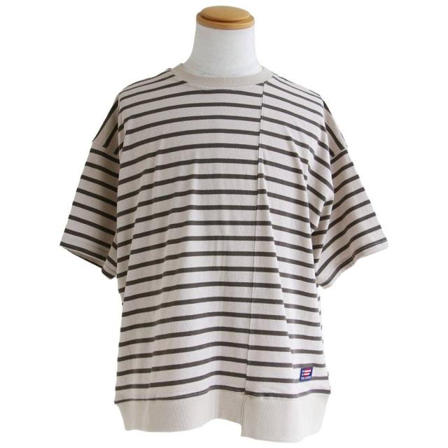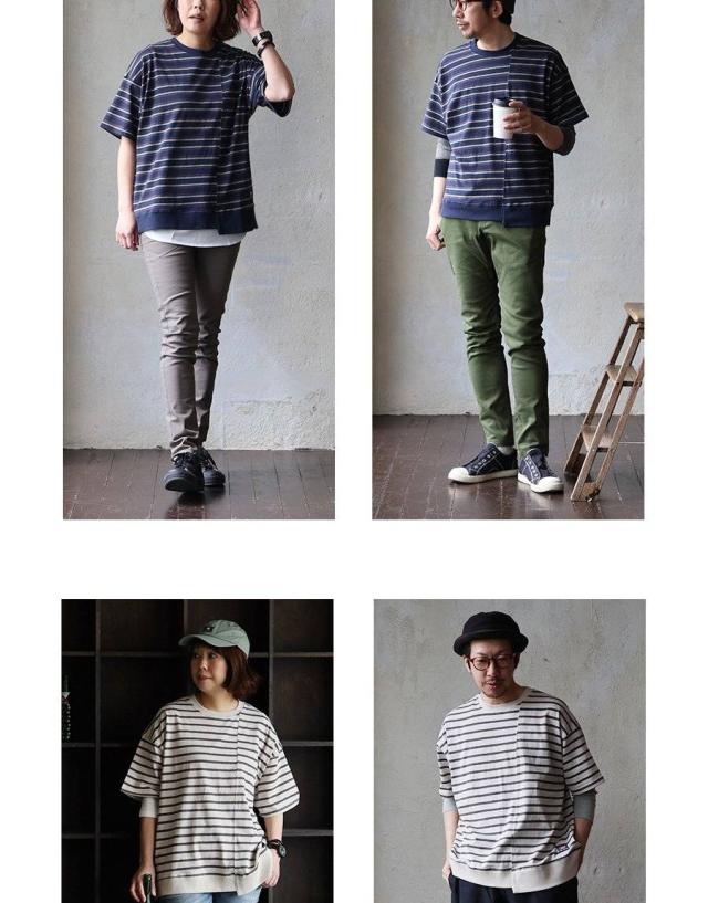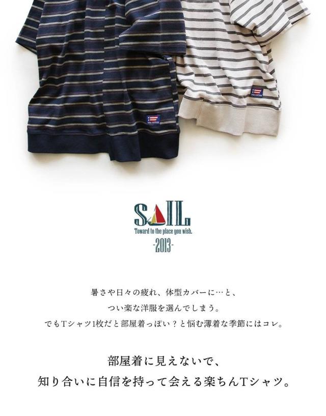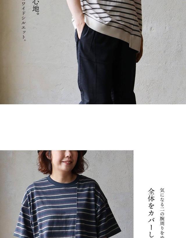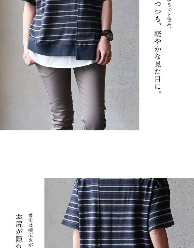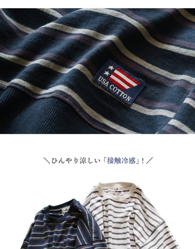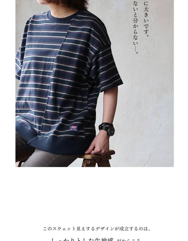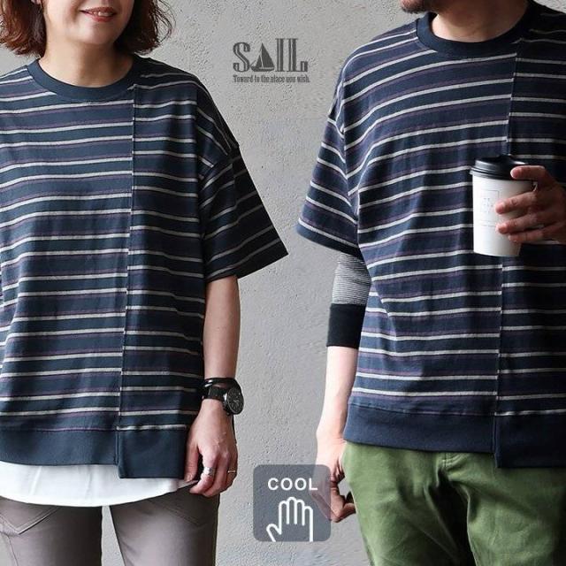 【メール便50】 tシャツ 半袖 五分袖 メンズ レディース リメイク ボーダー 着痩せ ワイド 冷感 涼しい 綿100% USA コットン しっかり 丈夫 リブ 重ね着 切り替え 二の腕 お尻 カバー ティーシャツ カジュアル パティ SAIL セイル