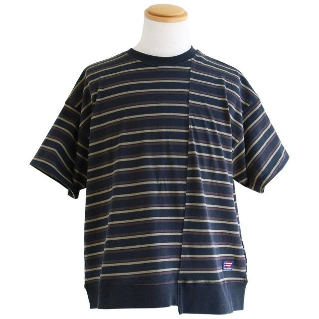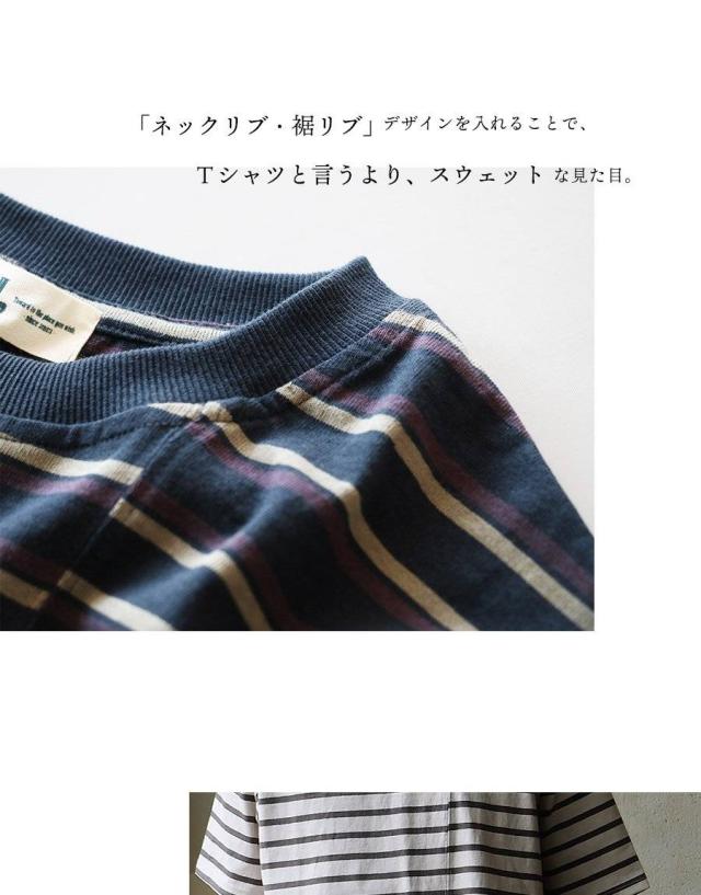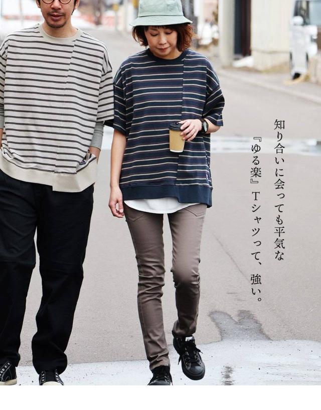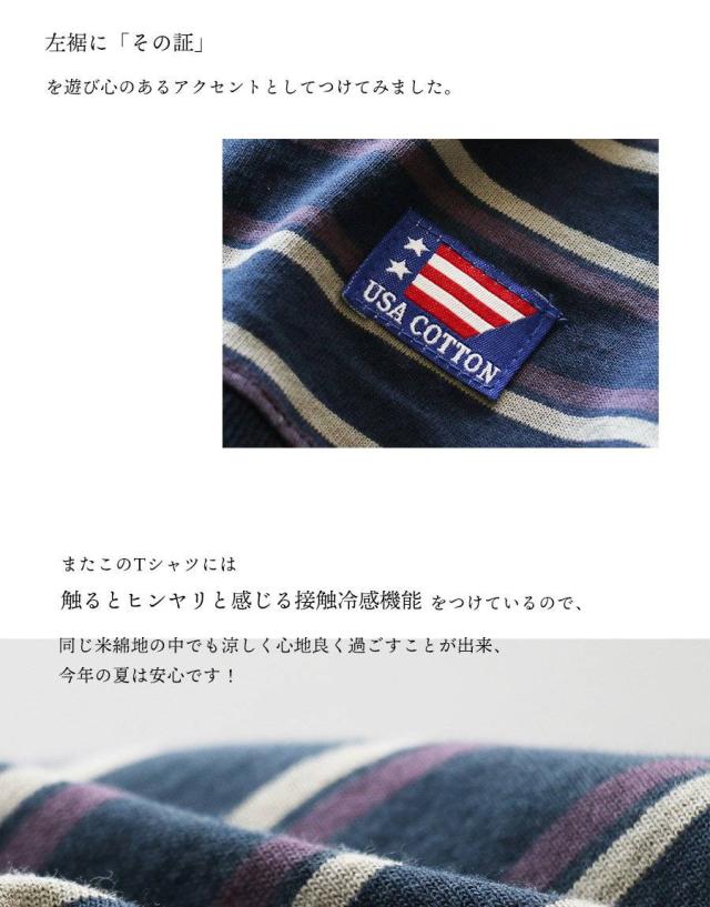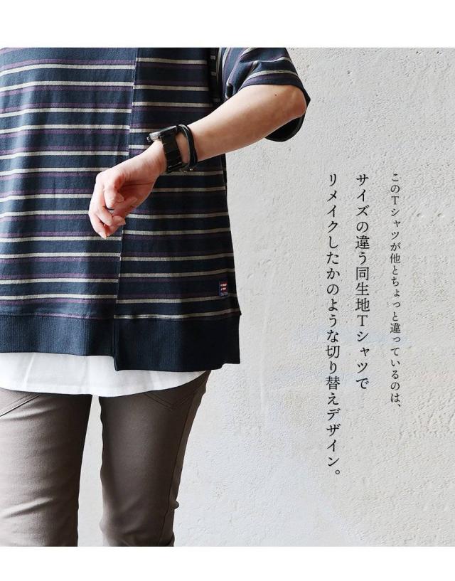 tシャツ 半袖 五分袖 メンズ レディース リメイク ボーダー 着痩せ ワイド 冷感 涼しい 綿100% USA コットン しっかり 丈夫 リブ 重ね着 切り替え 二の腕 お尻 カバー ティーシャツ カジュアル パティ
