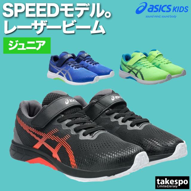 レーザービーム アシックス キッズ 白底 徒競走 運動会 マラソン大会 ランニング ゴムひも マジックテープ 面ファスナー ジュニア