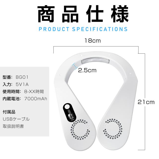 首掛け扇風機は、720°大風量を備えており、風を広範囲に送ることができます。80個の送風口が装備されており、全体的な涼しさを実現します。多くの送風口があるため、より効率的に風を循環させることができ、全体を素早く涼しくすることができます。ネッククーラーは7000mAh大容量バッテリー電源をアップグレードし、長時間の外出時も快適にお過ごしいただけます。朝から夕方まで1日中ヒンヤリと感じる、暑さを忘れる ネッククーラー です。こちらの首掛け扇風機はTYPE-C充電式で、パソコン、車載USB充電器、モバイルバッテリーで充電しながら使用もできますので、お出かけ時や充電ができない場所でも安心です。