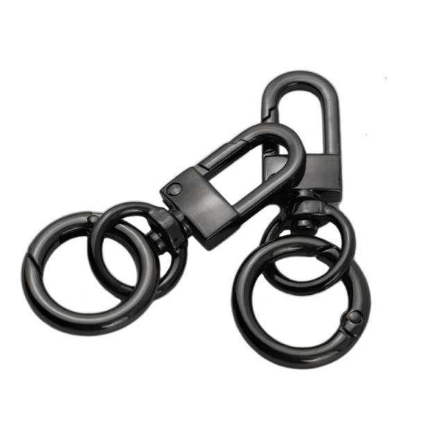 キーホルダー 金具 ナスカン マルカン付き 2個入り キーリング 回転フック 丸カン付き キーホルダーパーツ ハンドメイド アクセサリーパーツ 手作り 手芸用品 素材 スプリング (ブラック)
