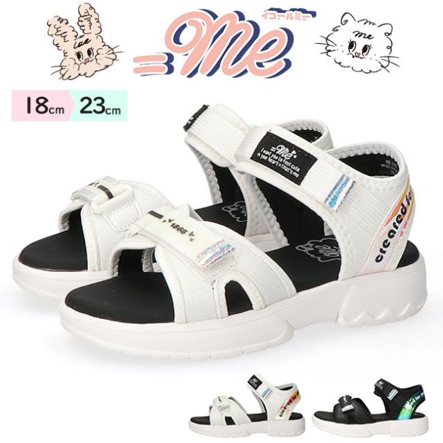 イコールミー サンダル キッズ 厚底 スポーツサンダル 黒 ベルクロ ME-3757 軽い おしゃれ 歩きやすい 痛くない 脱げない かかと付き かかとあり ストラップ 韓国 ガールズ ジュニア 女の子 子供 春 夏 スポサン 靴