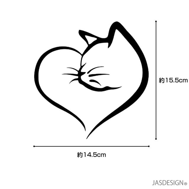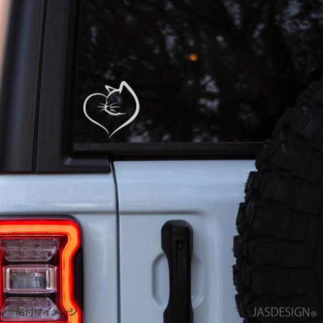 猫 ステッカー 車 バイク ヘルメット カーステッカー ハート 傷隠し 壁 ウォール パソコン スマホ かわいい おもしろ 防水 シール カッティングステッカー デカール ブラック ホワイト JM-391