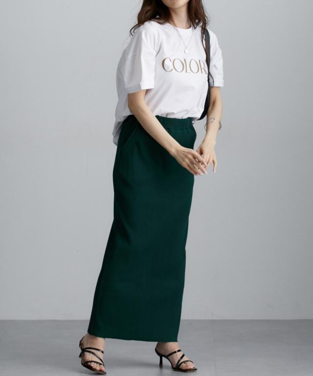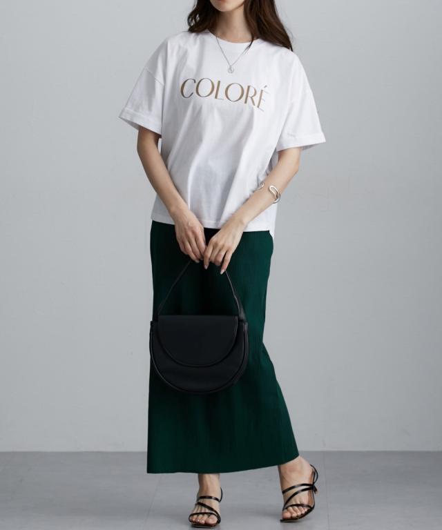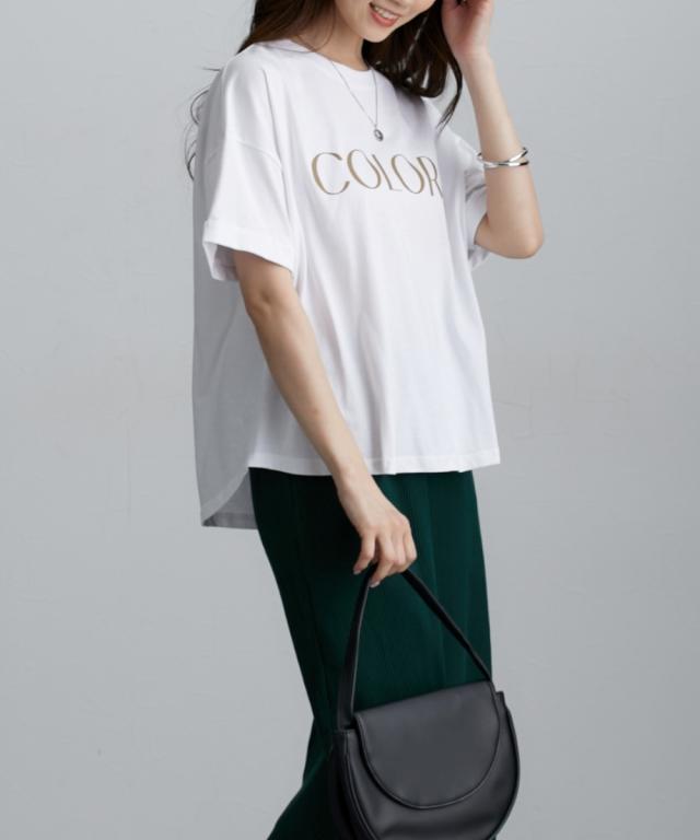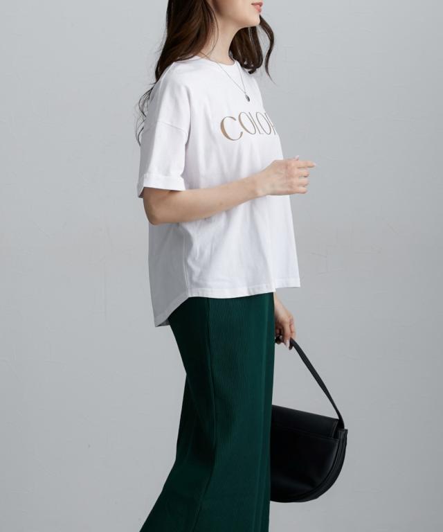 ■デザイン ベーシックな形にロゴをプリントした夏に何枚あっても便利なTシャツ袖をロールアップしたデザインがポイント。ややゆったりめのサイズ感でこなれ感が出しやすいアイテムです! ■素材 本体は綿100%素材でこれからの季節におすすめの素材。ほどよい張り感があります。衿リブはポリウレタン混なので伸縮性があり着脱しやすい ■おすすめのスタイリング さりげなくお尻をカバーするやや後長めデザインでパンツ・ナロースカートなど合わせるとほっそり見せが叶います。