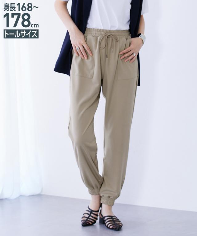 【高身長な方向け】はき心地らくちん!きれい見えもかなうジョガーパンツ! ■デザイン ゆるすぎずきれいなシルエット、高身長さん専用設計で股下長めです。 ■素材 ・夏にはやや厚手のしっかり感のある素材。 ・着心地の良い生地でほどよい落ち感があります。