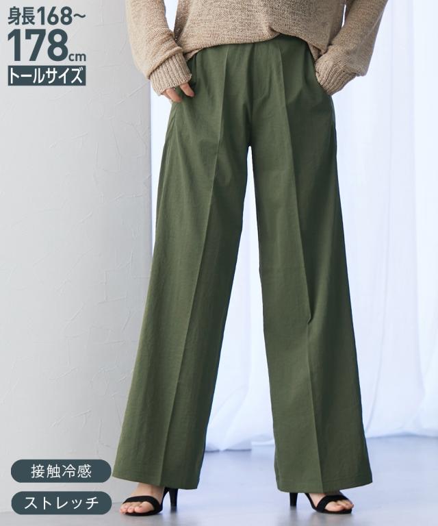 ワイドパンツ トールサイズ レディース 高身長 接触冷感 ライトチノワイド パンツ 夏 ゆったり 体型カバー 美脚 ボトムス ズボン M/L ニッセン nissen
