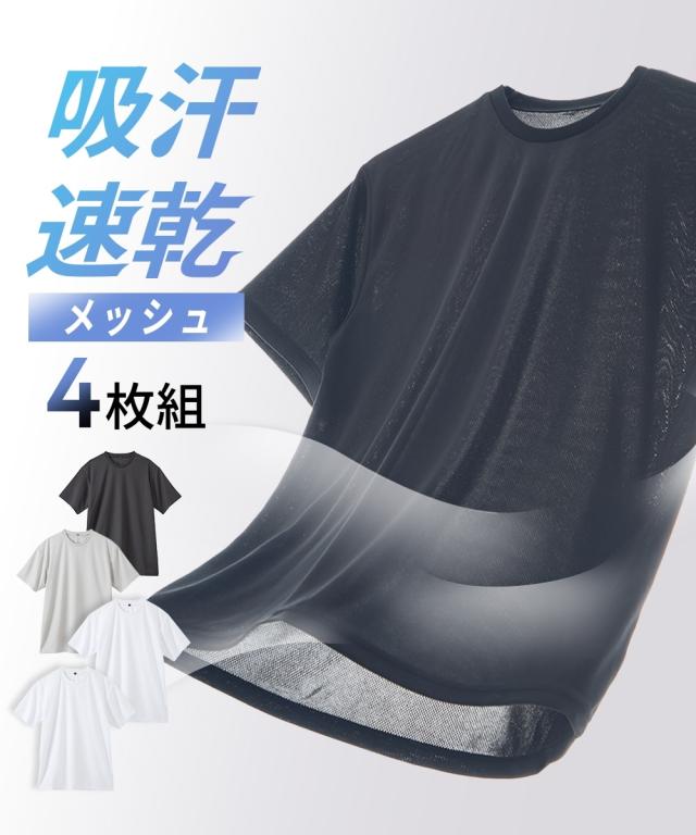 インナー シャツ 半袖 メンズ 吸汗速乾 ハニカムメッシュ クルーネック 4枚組 春 夏 秋 男性 肌着 下着 4枚組 M/L/LL
