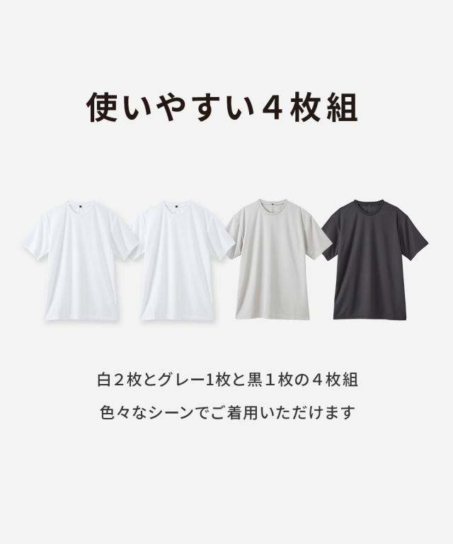 インナー シャツ 半袖 大きいサイズ メンズ 吸汗速乾 ハニカムメッシュ クルーネック 4枚組 春 夏 秋 ビッグ ラージ 男性 肌着 下着 3L〜10L
