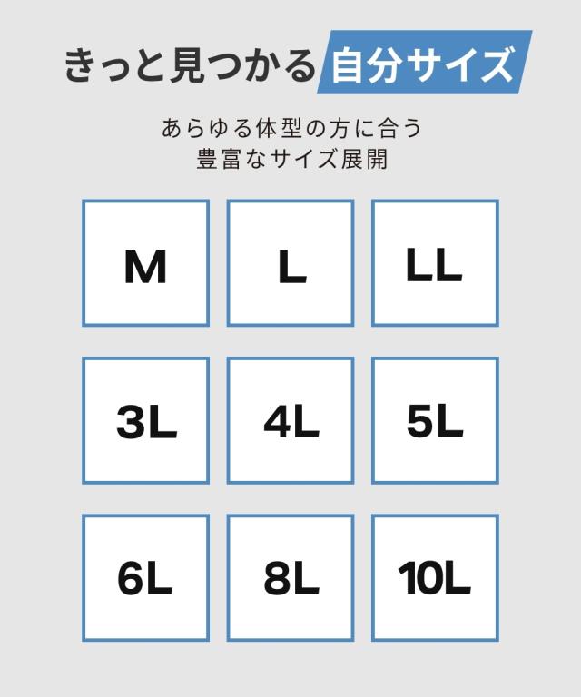 ・ M/L/LL はこちら ・ 3L〜10L はこちら ・ M/L/LL はこちら |