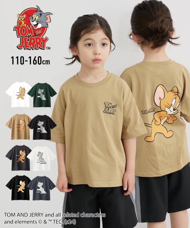 Tシャツ 子供服 キッズ トムとジェリー ビッグシルエット バック プリント 男の子 女の子 夏 トップス カットソー グリーン/チャコール/ベージュ/黒
