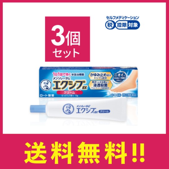 【指定第二類医薬品】メンソレータムエクシブEXクリーム15g 3個セット 水虫治療薬 かゆみ 皮めくれ 水ぶくれ 水虫 いんきんたむし ぜにたむし【セルフメディケーション税制対象】【定形外郵便】