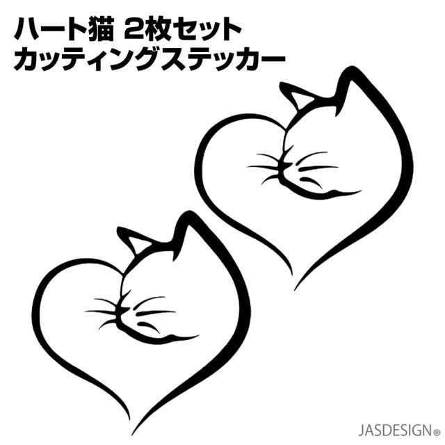 猫 ステッカー 車 バイク ヘルメット カーステッカー ハート 傷隠し 壁 ウォール パソコン スマホ かわいい おもしろ 防水 シール カッティングステッカー デカール ブラック ホワイト 2枚セット JM-391